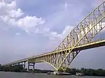 ![]() | 2 | Ampera Bridge | 1,177 m (3,862 ft) | Beam bridge Steel Vertical-lift bridge | Road bridge Musi River | 1965 | Palembang 2°59′30.4″S 104°45′48.5″E / 2.991778°S 104.763472°E | South Sumatra | [3] |