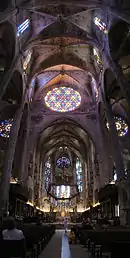 | 8 | Palma Cathedral | 44 m (144 ft)[9][10] | Palma | Spain | Pillars sustaining vaults are the narrowest in the world: they measure 1/12 of vault width (at Reims, pillars are 1/6 of vault width) |