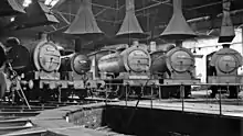 This is a list of railway roundhouses. A roundhouse is a building used for servicing locomotives, large, circular or semicircular structures often located adjacent to or surrounding turntables.