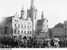 Jews from Litoměřice were forced to flee to the Protectorate or were deported during the Holocaust in the Sudetenland.[3] From March 1944 to May 1945, Leitmeritz concentration camp was located west of the town. 18,000 prisoners passed through the camp and were forced to work mostly on excavating underground factories (Richard I and II) under Radobýl. 4,500 died.[4][5]