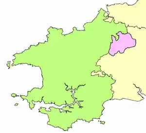 Llanfyrnach Rural District Council was created in 1894 from the part of Newcastle in Emlyn Poor Law Union situated in Pembrokeshire and consisted of six civil parishes: Capel Colman, Castellan, Clydau, Llanfyrnach, Penrydd, and West Cilrhedyn. It continued to be administered by Newcastle Emlyn.[1]