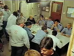 Paul Knight decided it was time for a real shock—a tragic exit for one of the main characters, who had starred in the show for nearly ten years. The man who was to be killed was Sub Officer John Hallam—a dedicated and loyal member of the watch and the London Fire Brigade. Hallam was killed off in 1996 (Series 9) during a huge warehouse fire, where he and his colleague, Leading Firefighter Geoff Pearce, were attempting to rescue four teenage girls on an unstable gantry 80 feet (24 m) above a blaze in the basement. Hallam held the gantry steady for Pearce as he walked across with one of the girls. As Hallam attempted to cross, the gantry cracked and Hallam fell to his death. The writers developed a storyline about Pearce feeling an overwhelming sense of guilt after the accident, which would lead to him considering a transfer. Series 9 attracted 16.8 million viewers.[4] Series 9 ended on a cliffhanger when both Dennis RS Fire Appliances crashed en-route to a shout.