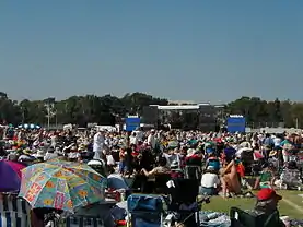 The Festival was started in 1980 by jazz radio station KLON (later renamed to KKJZ) in Long Beach, California under the direction of Bernie Pearl,[1] who was the host of a blues program "Nothing But The Blues" on KLON at the time. The first Festival was a one-day event titled the "KLON Blues & Gospel Festival" held at Veterans Stadium in Long Beach, drawing only a small crowd of 700, resulting in loss of $7,000 for the radio station. The Festival grew larger each year, becoming a major fund raising event for KLON. During 1996 through 2000, KLON expanded the event to 3 days utilizing the entire Labor Day weekend. It went back to the 2-day event in 2001 because CSULB wanted Labor Day to clean up the field for their use in the new school semester. The Festival venue for the second Fest and thereafter was the North Athletic Field at Cal State University, Long Beach (CSULB), with the exception of 1992 which was held at Shoreline Aquatic Park in downtown Long Beach, and at Rainbow Lagoon in downtown Long Beach beginning in 2008 and 2009.