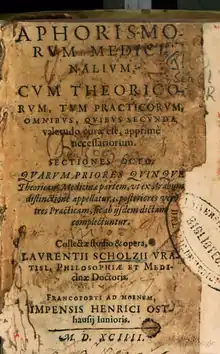 He became famous through the translation and publication of writings of famous Greek and Arab medical writers, as well as contemporary physicians. To these contributions he added his own Aphorismorum medicinalium cum theoreticorum tum practicorum sectiones VIII of 1589, a reference work of the collected medical knowledge of his age.