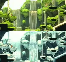 Unlike the original title, players are able to switch between seasons, from winter to summer and vice versa, assisting players throughout various puzzles. In addition to this, the game features an in-game map and hint system to prevent players from getting lost.[8] Players are able to swim, break rocks, and use cyclones, amongst other abilities and items obtained throughout the progress of the game, such as a coat.[8] According to Frontier Developments, the non-player characters in LostWinds: Winter of the Melodias were developed to feel more personal than the original title.[9]