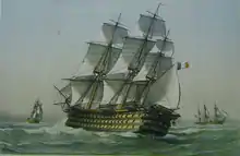 On 1 April 1880 Lafont was appointed deputy commander of the training squadron under Vice-Admiral Henri Garnault(fr) with the battleship Suffren as his flagship. He was promoted to vice-amiral on 24 February 1881. In February 1882 he was prefect of the 2nd maritime district at Brest.[3] Lafont was maritime prefect of Brest from 15 February 1882 to 15 October 1885.[6] He was made a Grand Officer of the Legion of Honour on 8 July 1884.[9] On 20 October 1885 he was appointed commander in chief of the training squadron. In November 1886 he was appointed Chairman of the Marine Works Council.[3] Lafont was awarded the Grand Cross of the Legion of Honour on 9 July 1889.[10]