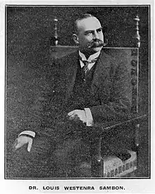 Louis Westenra Sambon (original first name Luigi, 7 November 1867 – 30 August 1931[1]) was an Italian-English physician who played important roles in understanding the causes (etiology) of diseases. He described many pathogenic protozoans, insects, and helminths including the name Schistosoma mansoni for a blood fluke.[2] He was an authority on the classification of parasitic tongue worms called Pentastomida (Linguatulida),[3] and one of the genus Sambonia is named after him.