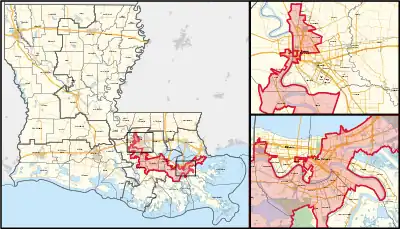 For most of the period from 1983 to 2013, this district contained nearly all of the city of New Orleans (except for a small portion located in the neighboring 1st congressional district), and some of its suburbs. In 2003, it was pushed into the West Bank portion of Jefferson Parish and South Kenner, which have a higher proportion of white residents.[4] After the 2010 census, the legislature pushed the 2nd slightly to the west, picking up a portion of Baton Rouge–essentially, most of the capital's majority-black precincts.