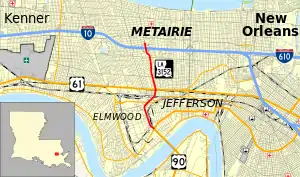 Elmwood0.00.0 US 90 (Jefferson Highway, Huey P. Long Bridge) New Orleans, Westbank