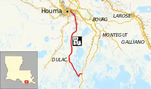 Dulac7.912.7 LA 3011 (Grand Caillou Road)Northeastern terminus of LA 3011