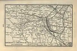 The Louisiana and Arkansas Railway (reporting mark LA) was a railroad that operated in the states of Arkansas, Louisiana, and Texas. The railroad's main line extended 332 miles, from Hope, Arkansas to Shreveport and New Orleans. Branch lines served Vidalia, Louisiana (opposite Natchez, Mississippi), and Dallas, Texas.