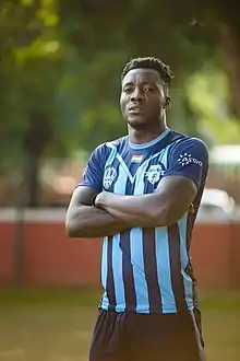 Loveday Enyinnaya with Minerva Punjab FC home jersey