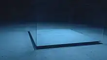 Taylor Cohen and Matty Peacock directed the music video for "Lovely".[37] It was uploaded to Eilish's official YouTube channel on April 26, 2018.[38][39][40] The video opens with Eilish trapped inside a crystalline box.[41] Khalid then appears out of thin air behind her, wearing matching black threads and silver chains as he sings with her.[39][42] Eilish and Khalid start to wander wearily around the box. A single rain cloud then unleashes rain and thunder.[43][44] The singers sometimes separate, but manage to find their way back to each other.[42] The rain from the cloud begins to freeze in the box and ice covers the walls as Khalid and Eilish hold each other. But as the video moves towards its end, the ice melts to reveal the box is empty.[43] Eilish created the video's concept wanting to portray the feeling of being hopelessly trapped with another person.[40][45]