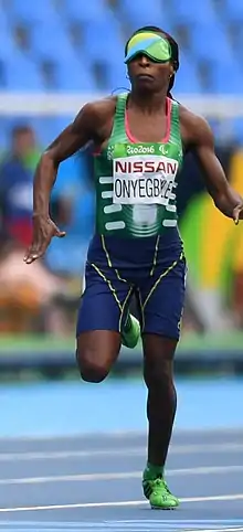 Onyegbule has a visual impairment and competes in T11 and F11 class races. She studied communications at Our Saviour Institute of Science and Technology.[1]