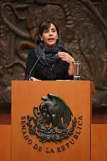 Luisa María de Guadalupe Calderón Hinojosa (born October 23, 1956, in Mexico City) is a Mexican politician affiliated with the National Action Party who served in the Senate of Mexico from 2000 until September 2006.[1] She is currently senator-elect as a PAN proportional representative.[2] Her term in the senate began in late 2012 and will continue through 2018. "Cocoa" (her nickname) is known as a champion for women and minority rights throughout Mexico.[3]