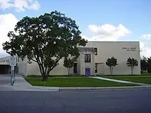 The LBJ campus opened in Northeast Austin in 1974 to relieve overcrowding at the nearby Northeast Early College High School (then known as Reagan High School.)[7] The school went through various renovations in summer 2010, funded by AISD's 2008 bond,[8] including remodeling many of the science labs (at the time used by LASA.) The school's theatre is located in a separate building from the rest of the campus; the building is named the Don T. Haynes III Performing Arts Center, after LBJ's band director for 39 years from 1975 to 2014.[9] As LBJ is built upon a hill, the lowest level of the main school building is partially underground and has no windows. It is fondly referred to as "The Dungeon" throughout campus. The outside of the campus is maintained by a volunteer group of students and parents.