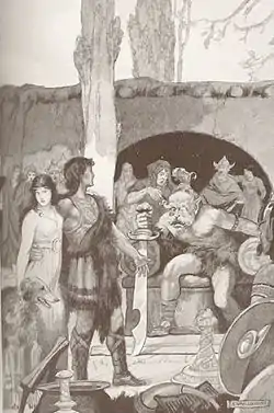 Culhwch's father, King Cilydd, the son of Celyddon, loses his wife Goleuddydd after a difficult childbirth. When he remarries, the young Culhwch rejects his stepmother's attempt to pair him with his new stepsister. Offended, the new queen puts a curse on him so that he can marry no one besides the beautiful Olwen, daughter of the giant Ysbaddaden. Though he has never seen her, Culhwch becomes infatuated with her, but his father warns him that he will never find her without the aid of his famous cousin Arthur. The young man immediately sets off to seek his kinsman. He finds him at his court in Celliwig in Cornwall and asks for support and assistance. Cai is the first knight to volunteer to assist Culhwch in his quest, promising to stand by his side until Olwen is found. A further five knights join them in their mission.