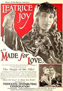 Made for Love is a 1926 American silent drama film directed by Paul Sloane, produced by Cecil B. DeMille, and starring Leatrice Joy.[1][2]