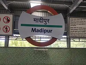 Madipur is a station on the Green Line of the Delhi Metro and is located in the West Delhi district of Delhi. It is an elevated station and was inaugurated on 2 April 2010.[1][2] It is named after Madipur village which is a big village of people from Yadav community.