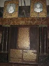 The De la Gardie family mausoleum in the abbey church of Varnhem. Statues of Magnus Gabriel De la Gardie (right) and his father Jacob.