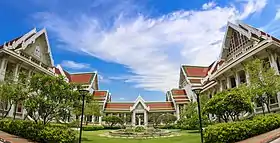 The Maha Chulalongkorn (Thai: มหาจุฬาลงกรณ์) and Maha Vajiravudh (มหาวชิราวุธ) buildings, also referred to as the Faculty of Arts Buildings, are a pair of historic buildings of Chulalongkorn University. Maha Chulalongkorn Building was originally built as the university's Headquarters or Administrative Building (ตึกบัญชาการ) during 1916–1918, to designs by British architect Edward Healey.[1] Maha Vajiravudh Building was later built from 1953 to 1956. The buildings, for most of their history, housed the university's Faculty of Arts. The buildings are listed as an unregistered ancient monument, and Maha Chulalongkorn Building received the ASA Architectural Conservation Award in 1987.[2]