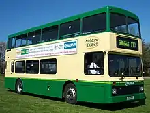 M&D was acquired by British Bus, who also owned the neighbouring Kentish Bus operation, on 13 April 1995.[2] The Invictaway services were re-branded as Green Line. Vehicle replacements saw Bristol VRTs replaced by Olympians. In 1996, the Cowie Group acquired British Bus. A new livery, designed by Ray Stenning and based on M&D's traditional green and cream including a stylised scroll fleetname, was introduced. It first appeared on a batch of Plaxton Pointer-bodied Dennis Dart SLFs, many of which were acquired under a Quality Partnership scheme with Kent County Council for three routes in Maidstone.