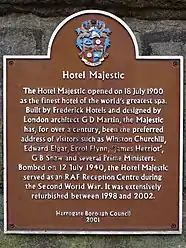 In the years before the First World War, the hotel was frequented by many celebrities, politicians and royalties. Prince Henry of Prussia stayed in The Majestic Hotel while organising an Anglo-German car rally in Yorkshire,[3] accompanied by the Maharajah of Patiala who was also a guest, as were a number of Russian grand duchesses.