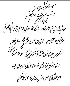 Maktoobat e Ahmad [Urdu- مکتو بات احمد; Letters of Ahmad (1878-1908) ] is a 7-volume collection of all available letters, written by Mirza Ghulam Ahmad in response to the queries and letters of his friends, companions and scholars. The volumes contain some exhaustive treatises on complex issues of religion and metaphysics as well as on matters of fiqh (Islamic jurisprudence).[1] A 3-volume edition comprising these as well newly discovered letters was published in 2008.[2]