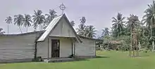 Photo of the Lutheran Church at Malahang Mission Station, Lae, Morobe Province. The new bell tower to the right of the picture.