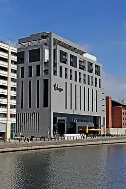 The first and only new-build hotel by Malmaison was designed by Leach Rhodes Walker architects and constructed by Morgan Sindall. The 11 storey building located at Prince's Dock opened in 2006 and has 130 rooms.[27]