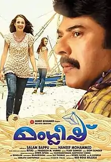 Manglish is a 2014 Indian Malayalam-language action comedy film directed by Salam Bappu, and the features Mammootty and Dutch actress Caroline Bech in the lead.[1] [2] The film is produced by Haneef Muhammed under the banner of Red Rose Creations. Manglish is the first Malayalam film to be released in Dolby Atmos.[3] The film is released on 25 July 2014 during the occasion of Eid-ul Fitr.[4] Later the film was dubbed into Telugu as Malik Bhai.[5]