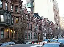 Manhattan Avenue–West 120th–123rd Streets Historic District is a national historic district in the Harlem neighborhood of Manhattan in New York City. It consists of 113 contributing residential rowhouses built between 1886 and 1896. The buildings are three story brownstone and brick rowhouses over raised basements in the Queen Anne, Romanesque, and Neo-Grec styles.[2]