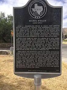 Architecture in Manhattan Heights includes buildings that represent Georgian Revival, Foursquare, Tudor, American bungalows and Spanish-Italian architectural influences.[3] In 1927, the first woman architect in El Paso and second in Texas, Mabel C. Welch, built her first home in the Manhattan Heights neighborhood.[9] Welch started the trend of Spanish revival in the area.[9]