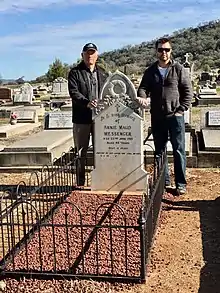 Grave of Annie Messenger - Manilla NSW. On the left is Annie and Dally's grandson, Ken Messenger, and on the right Cameron Dally Messenger, the great grandson.