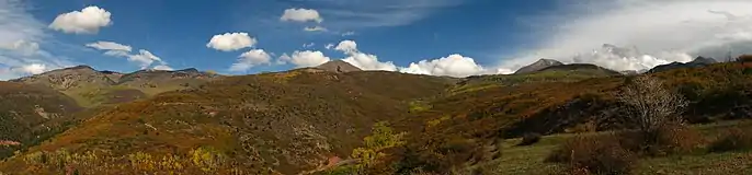 The Manti–La Sal National Forest covers more than 1.2 million acres (4,900 km2)[2] and is located in the central and southeastern parts of the U.S. state of Utah and the extreme western part of Colorado. The forest is headquartered in Price, with ranger district offices in Price, Ferron, Ephraim, Moab and Monticello.[5] The maximum elevation is Mount Peale in the La Sal Mountains, reaching 12,721 feet (3,877 m) above sea level. The La Sal Mountains are the second highest mountain range in Utah after the Uintas. Parts of the forest are included in the Bears Ears National Monument.