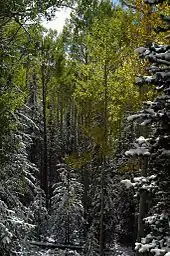 The La Sal Mountain loop road leads from Castle Valley to Geyser Pass and back down to Moab. Scenic Oowah Lake can be found within the forest.