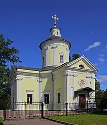 The oldest remaining building is the Church of the Nativity of the Theotokos, built in 1707 by the architect Vladimir Belozerov. Belozerov was a serf of Golitsyn who sent him to France to study architecture. He built a church in a style close to European Baroque. Golitsyn was not content with the church and had Belozerov to be whipped.[2][5]