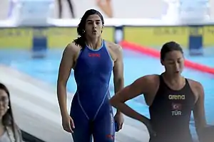 Maryam Sheikhalizadeh (Persian: مریم شیخ‌علیزاده with full legal name Maryam Sheikhalizadehkhanghah[1] (Azerbaijani: Məryəm Şeyxəlizadəxangah);[2] born July 18, 2004, in Tehran, Iran) is an Iranian-Azerbaijani competition swimmer, She is a member of National Swimming Team of the Republic of Azerbaijan. She has met the 2020 Olympics qualifying time for the Women's 100 m butterfly, and represented Azerbaijan at the 2020 Summer Olympics.[3][4]