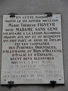 On 16 January 1774 Marie Thérèse Figueur, called Madame Sans-Gêne, was born in this house.