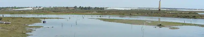 The current hydrography goes back to the 1755 Lisbon earthquake and the successive accumulation and removal of sediments, as well as being influenced by the Guadiana and recently the Tinto-Odiel rivers because of the construction of the Juan Carlos I breakwater and other dikes that modify the flow of sediments.[4] For a structure by zones, see the structure of the marshes.