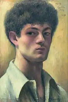 From an early age, Gertler showed signs of a great talent for drawing. On leaving school in 1906, he enrolled in art classes at Regent Street Polytechnic. Due to his family's poverty, he was forced to drop out after a year, and in December 1907, he began working as an apprentice at Clayton & Bell, a stained glass company.[8] He disliked his work there and rarely spoke of it in later years.[8] While there, he attended evening classes at the Polytechnic. In 1908, Gertler was placed third in a national art competition and it inspired him to apply for a scholarship from the Jewish Education Aid Society (JEAS)[upper-alpha 1] to resume his studies as an artist.[9] The application was successful. Upon the advice of the prominent Jewish artist William Rothenstein, he enrolled at the Slade School of Art in London in 1908. During the four years he spent at the Slade, Gertler was a contemporary of Paul Nash, Edward Wadsworth, C. R. W. Nevinson, Sir Stanley Spencer, Isaac Rosenberg, and Morris Goldstein, among others.