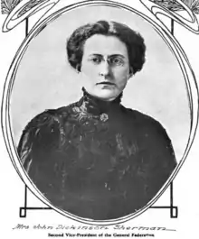Mary Belle King Sherman joined the Chicago Woman's Club on advice from her mother-in-law, already a member. She joined a women's study group on parliamentary law that sparked an ongoing interest in the subject.[2] Soon she was using her new expertise while serving as an officer in women's organizations, including the Chicago Woman's Club, the Illinois Federation of Women's Clubs, and the General Federation of Women's Clubs.[3] She held the position of recording secretary in the national organization from 1904 to 1908, then became vice president at the national level, from 1908 to 1910. She also published a book on parliamentary law, Parliamentary Law at a Glance: A Guide for Club Women and Students (1901), and taught at John Marshall Law School in Chicago.[4] In 1907 she toured the Panama Canal Zone with Federation president Eva Perry Moore.[5]