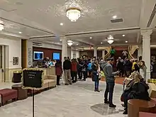 In 2018, the 1978 lobby, the McBare Building, and the courtyard were demolished to begin an expansion of the Theatre into a Performing Arts Complex, finished and opened in October 2019.[4] The complex contains an expansive lobby, a cocktail lounge, offices for the Maryland Symphony Orchestra, a VIP suite, a rehearsal stage, and a ballroom. This expansion accompanied the expansion of the adjacent Barbara Ingram School for the Arts. The project was designed by Grimm + Parker Architects.[5]