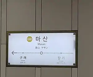 Masan Station is a station on the Gimpo Goldline in Gimpo, South Korea. It opened on September 28, 2019.[1]