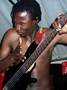 Mashasha's bass playing has been noted for its combination of virtuoso technique, assertive playing and melodic imagination.[10] He has developed an intricate style of playing, which is rooted in traditional Zimbabwean Shona percussion, with a strong influences of blues scales and jazz improvisation techniques. His bass playing style ranges from forceful with a strong sense of urgency, to melancholic and meditative, with noticeable influences from bass players Victor Wooten, Jaco Pastorius, Marcus Miller, Wilbur Ware, Gary Peacock, Étienne M'Bappé, Dave Holland and others.