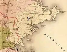 The Act of September 16, 1842, established the district on the North Shore and New Hampshire border, with the following municipalities:[5]
