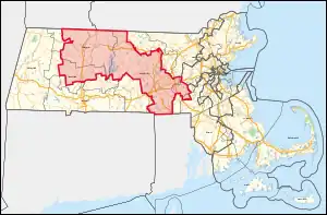 The shape of the district was changed for the elections of 2012, after Massachusetts congressional redistricting to reflect the 2010 census.[3] The new district covers central Massachusetts, including much of Worcester County, and is largely the successor to the old 3rd District. Most of the old 2nd district, including Springfield, has been moved into the new 1st district.