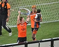 Smith with the A-League trophy (Brisbane Roar, 2012)