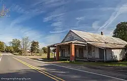 McNutt Gin, which faces west onto LA 121. Just past is Belgard Bend Road on the south side of the bayou, then the bayou, then Hot Wells Road along the north side of the bayou.
