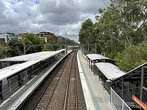 Meadowbank railway station is located on the Main Northern line, serving the Sydney suburb of Meadowbank. It is served by Sydney Trains T9 Northern Line services.